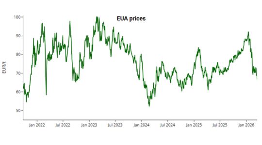 In februari liet de prijs van EU-ETS emissierechten een geweldige “sell-off” zien: de CO2-prijs daalde met meer dan 20 procent vanaf 90 euro per ton. Dit kwam niet door veranderingen in uitstoot of energieverbruik, maar door beleidsonrust.