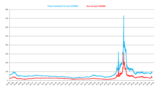 Uit onderstaande grafiek wordt ook direct duidelijk wat de prijsimpact van de verschillende crisissen op onze gas- en elektriciteitsprijzen zijn. De huidige prijsoplevingen staan (vooralsnog) in schril contrast met de enorme pieken van 2022.